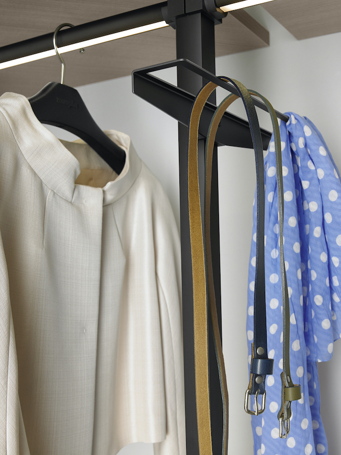 Podczas porannego szykowania się do pracy docenimy prostą zasadę trzymania oddzielnie różnego rodzaju ubrań. Płaszcze, sukienki, spodnie i inne długie rzeczy w jednej sekcji. Krótsze, jak koszule, bluzki i bluzy w kolejnej. To co można składać, jak swetry i koszulki na oddzielnych wysuwanych półkach. Również spodnie i spódnice mogą mieć dla siebie wysuwany wieszak. Właściwe sekcje automatycznie posegregują odzież wedle sposobu przechowywania. Jeśli jesteśmy pedantyczni, to możemy pokusić się o posortowanie ubrań na wieszakach i półkach według koloru. Pomaga to odnaleźć i skompletować strój na konkretną okazję, a nawet dopasować do nastroju, jaki mamy danego dnia.